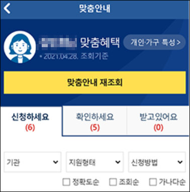 4. 미리 홈페이지를 통해 받을 수 있는 정부 혜택 목록을 확인하시고, 신청하는 것이 편리합니다 .