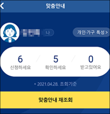 4. 나의혜택에서 [맞춤안내 조회]를 선택합니다.